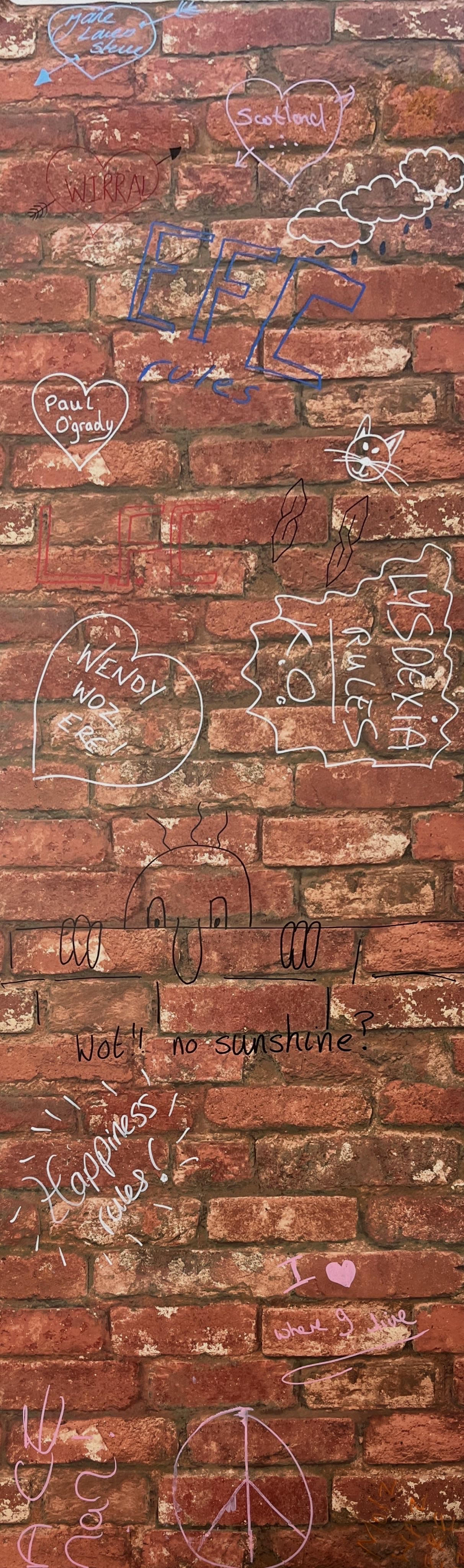 Throughout a series of creative sessions, we invited individuals of all ages to take part in our arts and crafts workshops. Participants were encouraged to contribute to our evolving "graffiti wall" — a vibrant tapestry of personal expression through images, drawings, and written reflections. Each contribution offered a glimpse into what residents felt was significant about the area they call home. From childhood memories and cherished landmarks to hopes for the future, the wall became a living mosaic of community identity — shaped by many hands, voices, and hearts.